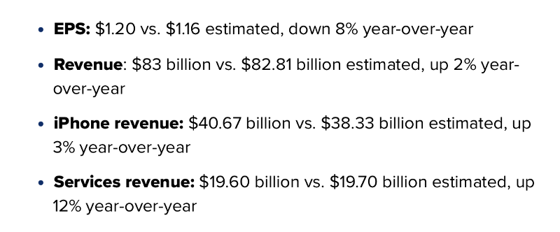 Apple exceeded expectations for both its sales, which came in at $83 billion, and its earnings per share, which came in at $1.20. That’s very amazing given the headwinds due to macro uncertainty.